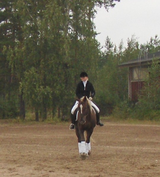 Ruutu ja Jaana olivat kansallisissa kouluratsastuskilpailuissa Harjulla 25.8.2007. Tulokset täällä... Jaana Lunkan ja Ruutun tuloksena oli 57,9% Helppo A:2 Suomenhevosluokasta. Tulos jätti Jaanan ja Ruutun tuloslistan loppupäähän, mutta ratsukosta oli hieno taas kilpailla näin kovassa seurassa, mukana oli mm. Lorentso, Rysykänpolkka, Sandelsson, Raidan Wilma, Taika-Akseli jne. Valokuvaaja: Johan Berklund |