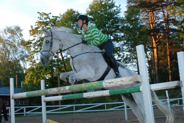 Tampajalaiset olivat viikonloppuna kisoissa Keravalla, Evitskogissa ja Takkulassa! Kisaraportteja ja tuloksia täältä.... KISARAPORTTI KERAVALTA: Kirppa ja Riga hummat starttasivat ajoissa Tampajalta kohti Keravaa (mukana kuskeja niin autolle kuin hevosille ja yksi kappale ahkeria hoitureita). Lastaus sujui nätisti ja sää oli upea, joten edes tiedossa ollut pitkä odotus ei saanut mieltä matalaksi!! Kisapaikalle saavuttiin juuri sopivasti, että nähtiin Paulan ja Röllin 90cm suoritus, joka olikin kyllä näkemisen arvoinen!! Todella hieno rata ja Paula itsekkin vaikutti tyytyväiseltä. 80cm oli jo tullut hieno 7. sija 0-0 tuloksella. Linda starttasi 90cm viimeisenä ratsukkona, liekkö äidin synttärit kannustaneet tytärtä, mutta tulos oli hieno ja nopea 0-0 ja sija 12. Luokassa sijoittui myös Paula ja Rölli, jotka olivat hienosti 15.:sta! Startteja oli huikeat 71. Tässä vaiheessa kolme rusettia Tampalle!! 100cm saimme vahvistukseksi Lauran ja Kaalin ja allekirjoittanut starttasi myös pilkullisella tykillänsä! Arvosteluna oli A 2.0, joten ajoittain nähtiin rumaakin ratsastusta, kun ratsastettiin kelloa vastaa. Tästä johtuen, tuli yllättävän paljon hylsyjä ja esteitä tippui. Puomit oli huterassa valitettavasti myös Lindan ja Rigan kohdalla ja 4 vp. oli tulos, saman kohtalon koki Laura ja Kaali. Kirppa sen sijaan oli oma loistava itsensä ja kiisi radan nopeasti ja tehokkaasti ja kääntyi silloin kuin kuski käänsi, tuloksena 5. sija 60 lähtijästä. 110cm lähti Tampajan hyvää menestystä puolustamaan allekirjoittaneen lisäksi Laura ja Kaali. Tässäkin luokassa Kirppa hyppäsi hienosti ja kuuliaisesti ja teki kaiken rauhallisesti, kunnes kuski toi kurvista leopardi pystylle miten sattuu ja tippuihan se... siinä hötäkässä meinas seuraava estekkin jo unohtua.. sekin kuitenkin löytyi ja maaliin päästiin.. Tulos siis 4 vp ja 7. sija. Ei rusettia Kirppaselle... Mutta Laura ja Kaali piti kuitenkin pintansa ja tekivät todella hienon 0-0 suorituksen ja vielä reippaalla tahdilla, joten jälleen tuli Tampalle rusetti, valkoinen tällä kertaa! Loistava päivä siis Tampajalle! Jokaisesta 5:stä luokasta ainakin yksi sijoitus, kaikille ratsukoille rusetti ja hyvä mieli jäi tulokseksi tältä päivältä!! Nyt hyvillä mielillä uusia haasteita kohti :) *Heidi Kisaraportti Evitskogista: 28.4.2008 Evitskogin kisat Matkaan lähdettiin n.10.30 Muumin,Ruudun,Emmin,Jaanan,Emmin isän(joka toimi kuskina ja ratojen kuvaajana:)sekä hoitajan Annun kanssa.Kisapaikalle päästiin hyvin,vaikka meinattiinkin tuolla huikean pitkällä matkalla eksyäkkin:D Jaana ja Ruutu hyppäsivät verkkaluokaksi 70-80 cm. Luokka meni hyvin,vaikka yksi harmittava kielto tulikin.Jaana starttasi luokassa 80 cm juuri ennen meitä ja hyppäsivätkin hienosti,mutta jälleen tuli yksi harmittava kielto.Jaana oli erittäin tyytyväinen ja sanoi toisen luokan menneen paremmin kuin edellinen.Sitten startattiin me Muumin kanssa.Radalla olleelle verkkaesteelle tuli jo kaukaa pysähdys jostain kumman syystä.. uudelleen tultiin ja yli mentiin.Koko rata mentiin puhtaasti ja aikakin oli hyvä sillä napattiin sinivalkoinen ruusuke:) Takaisin tallille lähdettiin hyvillä mielin,koska reissu onnistui hyvin ja päiväkin oli aurinkoinen ja lämmin! t.emmi ps. Kuulimme myös, että Fisu&Harri ja Eliska&Annu tekivät puhtaita ratoja päivän myöhäisimmissä luokissa. |