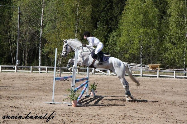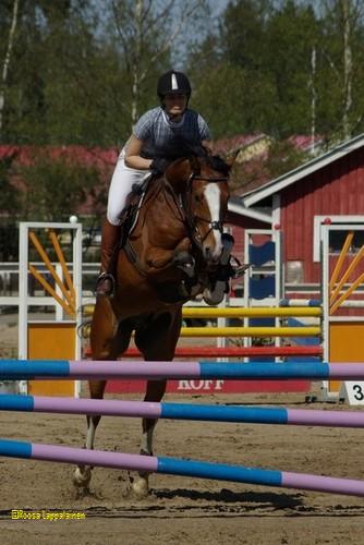 Kisoissa Keravan alue-estekisoissa 17.5, katso tulokset... ja koulukisoissa Tuomarinkylässä (KIPA-linkki) RAPORTIT: Estekisoissa pitkästä aikaa oli "Uuden" ratsun kanssa Hemu.. Kisaraportti siis Kirpalta ja Hemulta: Joo ihan asiallisesti paastiin maaliin ilman pudotuksia tai kieltoja. Mutta ei se nyt kylla mitaan rytmikasta menoa ollut.. Heip, Keravalle startattiin aamunkoitteessa kokoonpanolla Kirppa & Hemu ja Zippe & allekirjoittanut. Lastaukset sujui mallikkaasti ja perilläkin oltiin juuri ajoissa! Hemun raportti olikin jo näköjään tavoittanut sivujen ylläpitäjän, joten siitä ei sen enenpää J. Zippe pääsi tosi toimiin noin 2 tunnin ympäriinsä kävelyn ja yhden pyöräilijän ahdistelun jälkeen (anteeksipyynnöt vielä tätille, joka joutui ajamaan ojaan..)! Verkassa Zippe oli todella kiltti ja kuuliainen, pidätteet meni läpi ja jalkakin toimi. Radalla poitsu oli hieman hermostunut (ehkä hieman ratsastajakin ;)..), joka näkyi ihan pienenä ylihyppäämisenä ja kiemurteluna. Neljän ensimmäisen esteen jälkeen homma rauhoittui ja loppurata oli oikein mukavaa menoa ja sain kaikkialle ne askeleet mitä olin suunnitellut! Nelosokserilla oli tosin erkaantuminen hyvin lähellä, kun ratsastaja kävi varmaan kolmessa metrissä ilmassa J, onneksi laskeuduttiin kuitenkin samoille paikkeille! Yksi yliaika virhe saatiin leijumisien ja pitkien teiden johdosta, mutta loisto lapsihevonen Zippe oli! Hyvä maku jäi näin ensi kisoista varmasti koko autokunnalle, ensi viikonloppuna ensimmäinen racing startti vuorossa, kuinkahan korkealla ratsastaja silloin käy?! Terkuin, Heidi